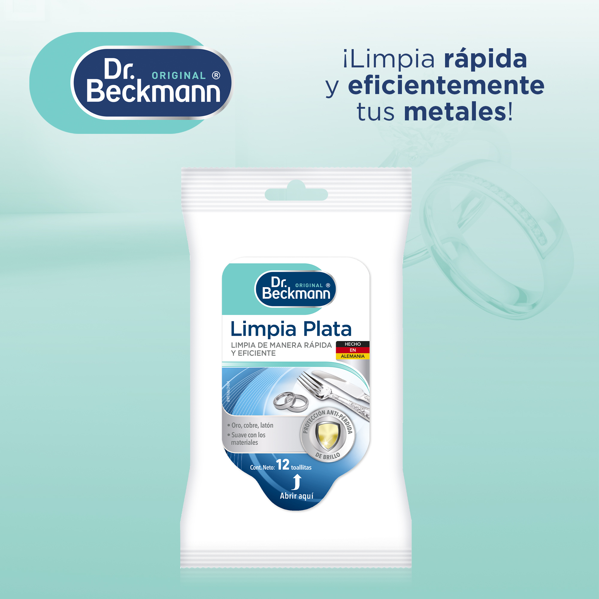 Devuelve el brillo a la plata y otros metales preciosos con las toallitas Limpia Plata de Dr. Beckmann, listas para usarse.
